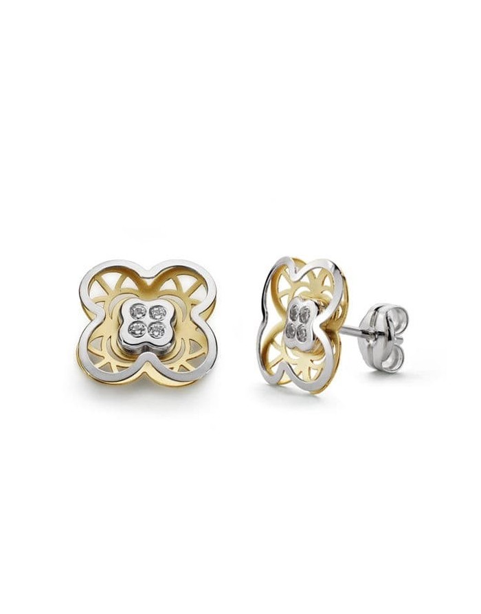 Women's Bicolour Openwork Clover Earrings with Brilliant Cut Zirconia in 18kt Gold -9 x 9mm