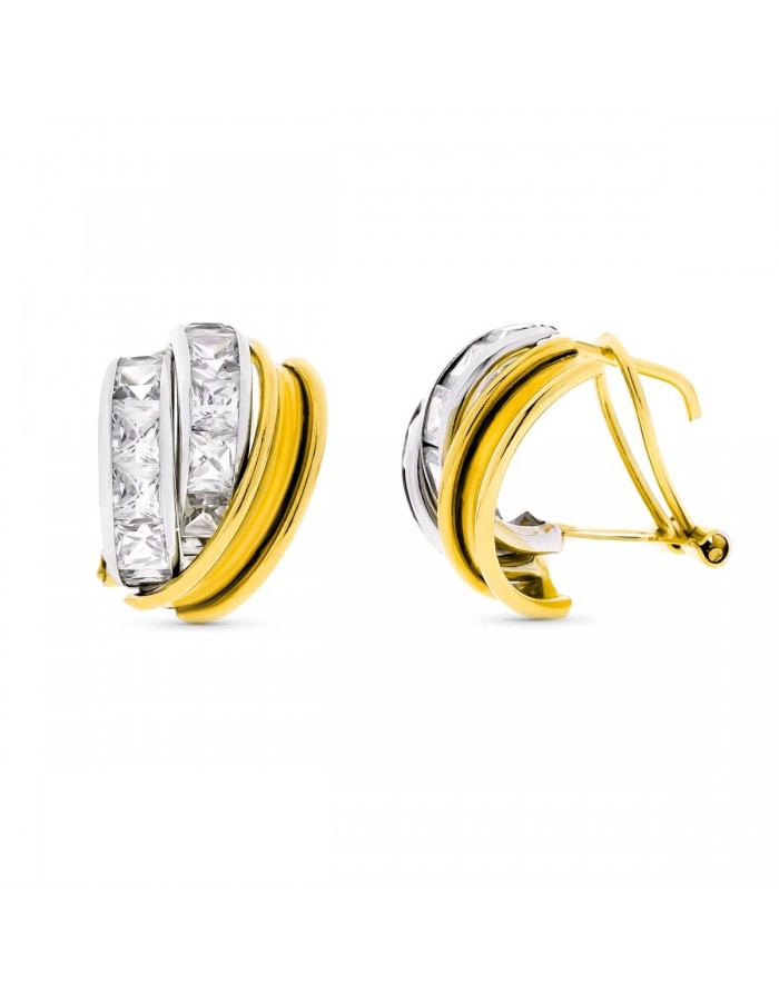 18K PENDIENTES ORO BICOLOR BANDAS Y CIRCONITAS