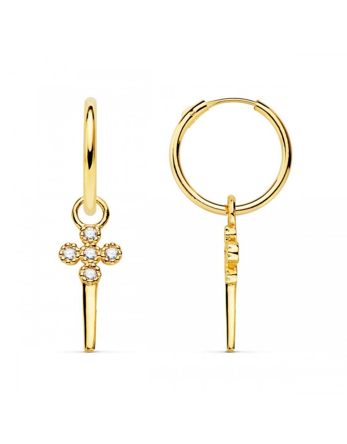 12 x 1,2mm Hoop Earrings with Cross and Dagger in 18Kt Gold