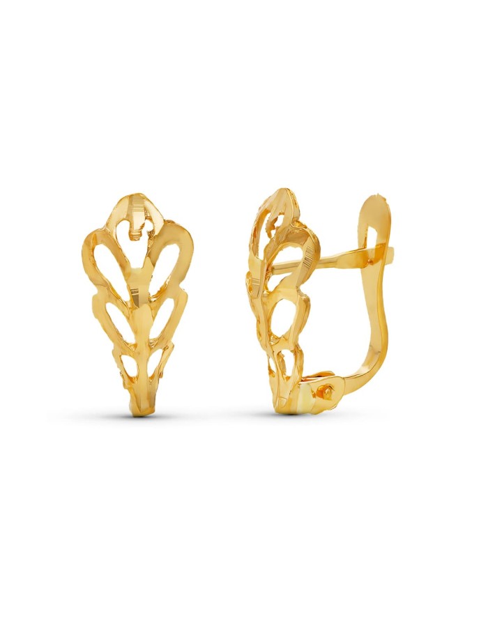 18K PENDIENTES ORO AMARILLO HOJA TALLADA 14X6 MM CIERRE CATALAN