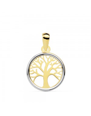 Pendientes Botón Árbol De La Vida Bicolor Oro 18KT -8mm