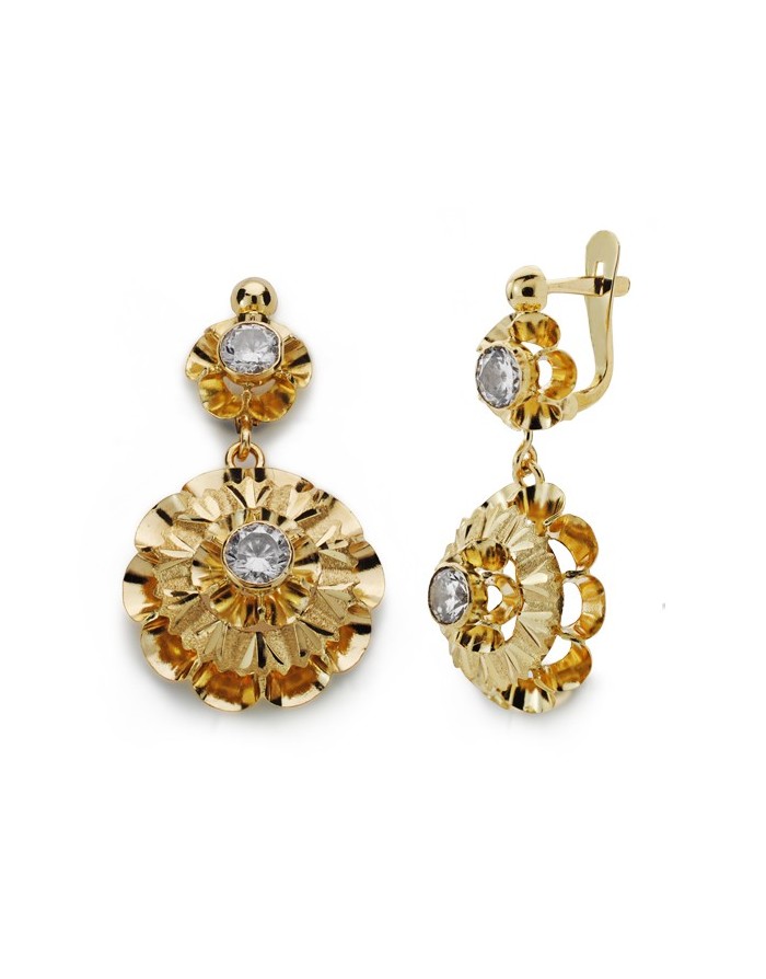 Earrings made in 18K Yellow Gold by Joyas Armaan with Catalan clasp. The stone of the earring is transparent zirconia.