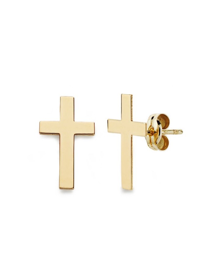 Cross-shaped earrings made in 18K Yellow Gold by Joyas Armaan with snap clasp.