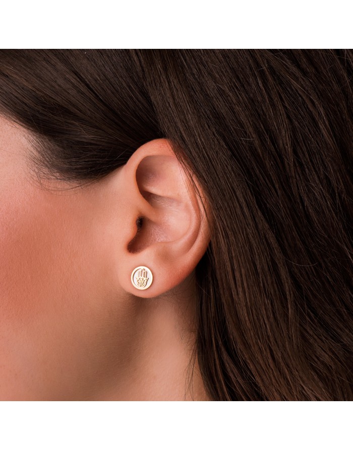 18kt Gold Fatima Fatima Hand Mother Of Pearl Earrings
