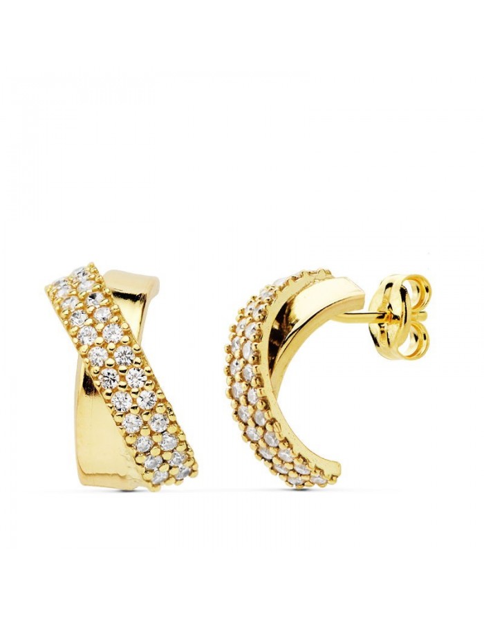 Half hoop earrings crossed band with semi-precious stones in 18Kt Gold
