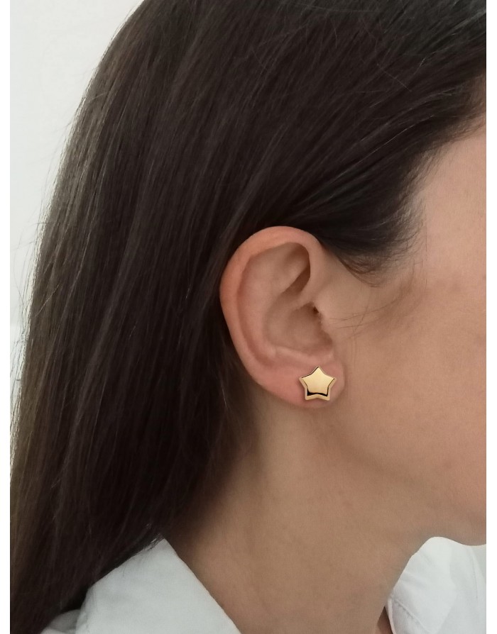 Star-shaped earrings made in 18K Yellow Gold with a Shine finish by Joyas Armaan with snap closure.