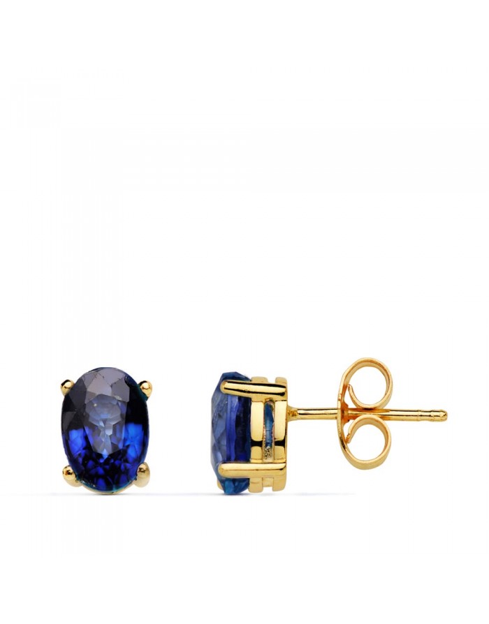 Earrings made in 18K Yellow Gold and with a Shine finish by Joyas Armaan with snap closure. The stone of the earring is blue sapphires.