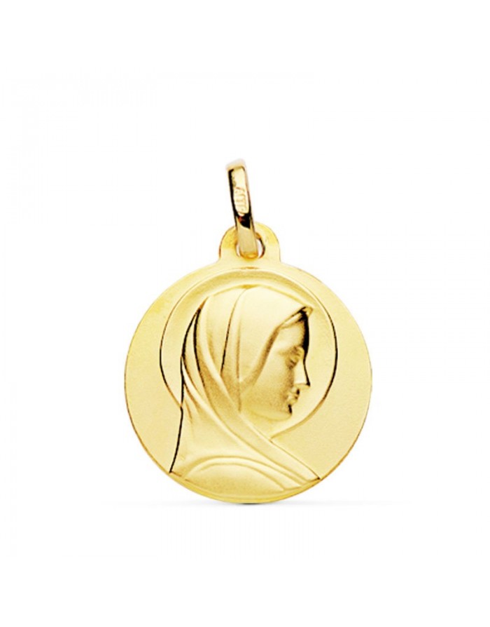 Medal with figure of the Virgin Lourdes and round shape in 18 carat yellow gold (750 mils).