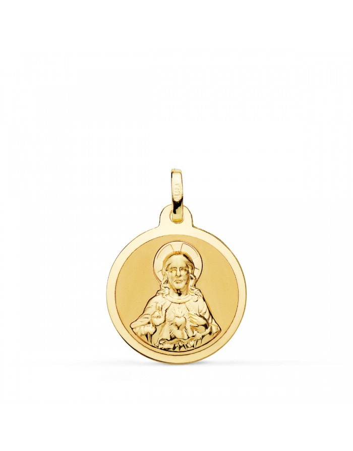 Medal of Our Lady of Mount Carmel and Heart of Jesus in 18Kt Gold -18mm