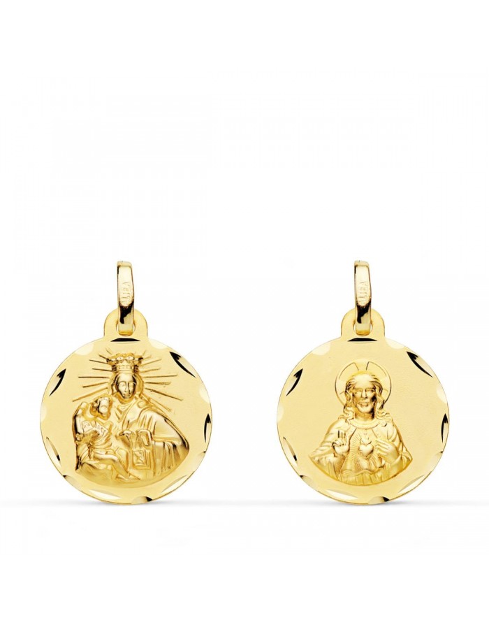 Virgin of Mount Carmel Scapular Medal and Heart of Jesus Carved -16mm