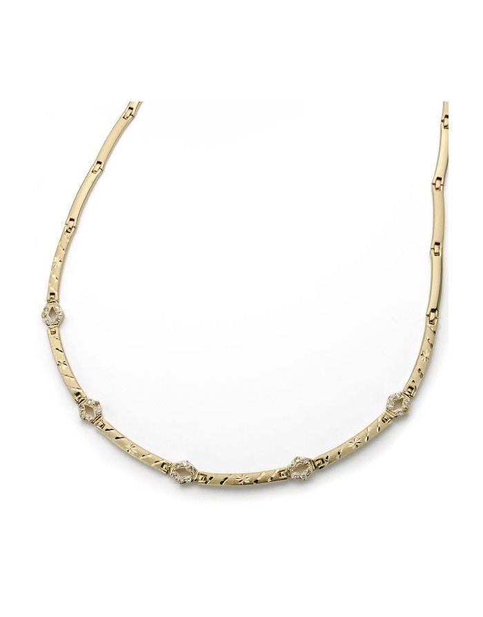 18kt Gold necklace with diamond links and zirconia stones