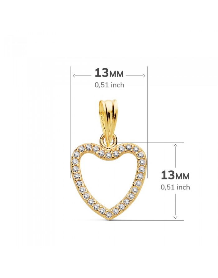 Heart-shaped 18K Yellow Gold Pendant by Joyas Armaan. The stones that adorn it are transparent zircons. It is a pendant specially designed for women.