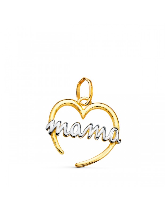 18K COLGANTE ORO BICOLOR CORAZON CON MAMA DE ORO BALNCO. 15 X 14 MM