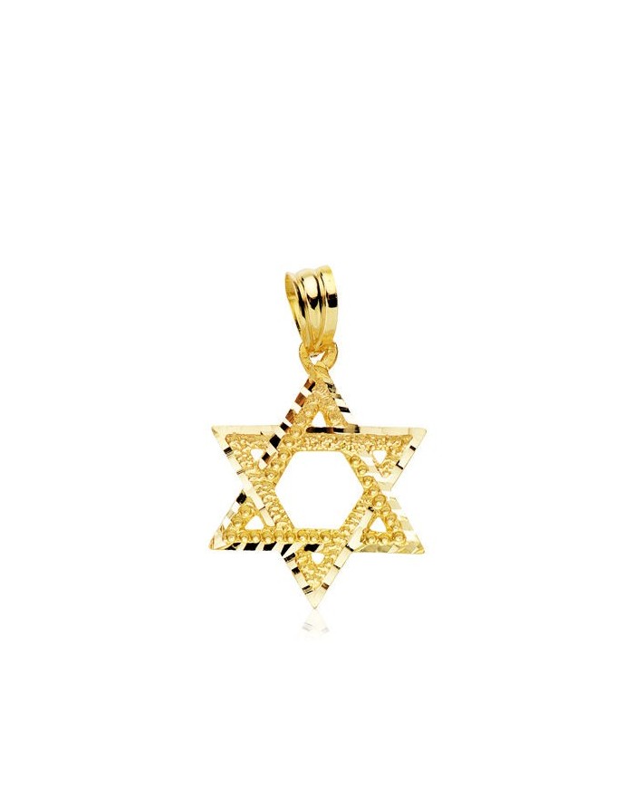 18KT Yellow Gold Pendant by Armaan Jewellery. This pendant is an emblematic symbol of Judaism. It has a nuanced finish and is carved in brightness with a size of 22 x 17mm and a weight of 1.20 grams.