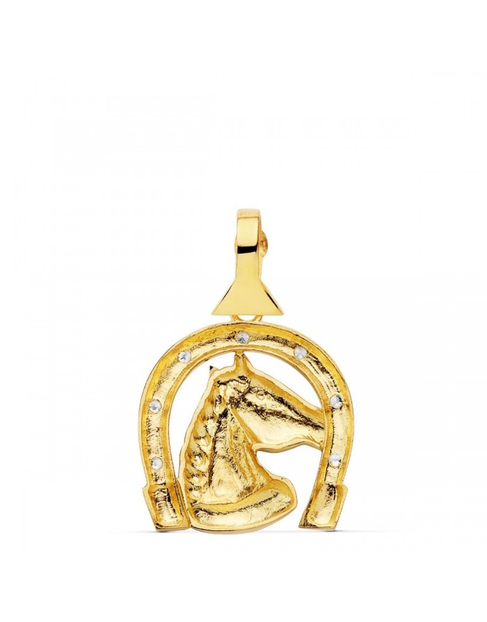 18KT Gold Horseshoe with Horse and Zirconia Pendant -28 x 24mm