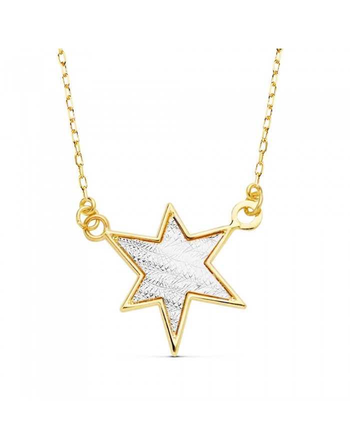 18K Yellow Gold Star Pendant from Joyas Armaan. This pendant has a loop clasp and is 45cm long. It is a pendant specially designed for women.