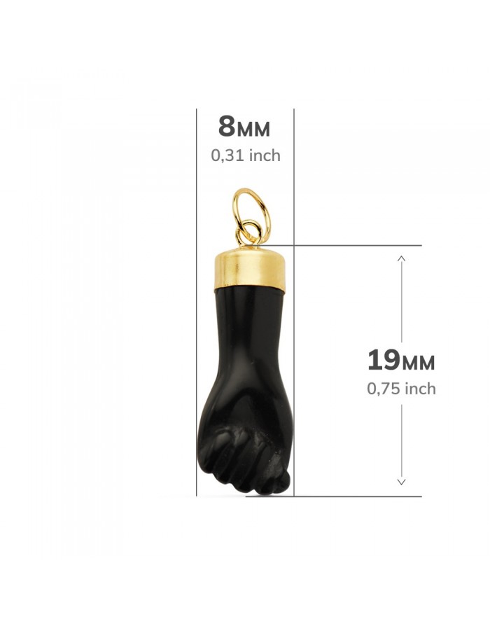 Pendant of 18K Yellow Gold in the shape of a Fist of the brand Joyas Armaan. The stones that adorn it are black jet. It is a pendant specially designed for unisex.