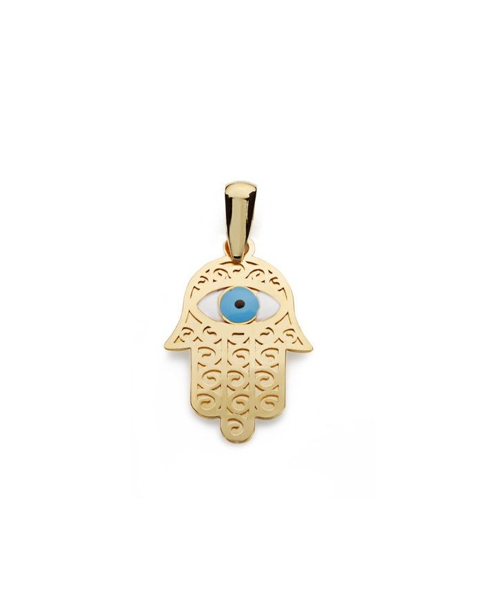 Pendant Hand of Fatima carved with Turkish eye 18kt
