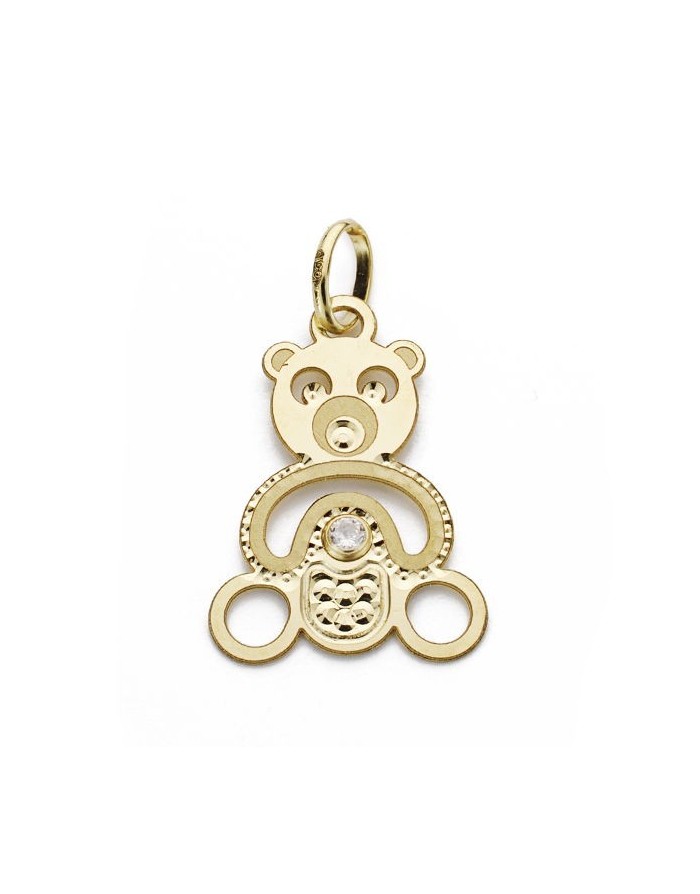 Pendant in 18K yellow gold in the shape of a teddy bear by Joyas Armaan. The stones that adorn it are transparent zirconia. It is a pendant specially designed for girls/women.