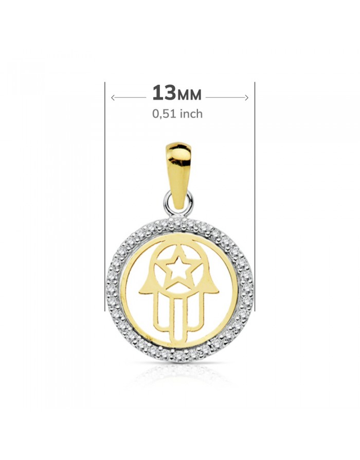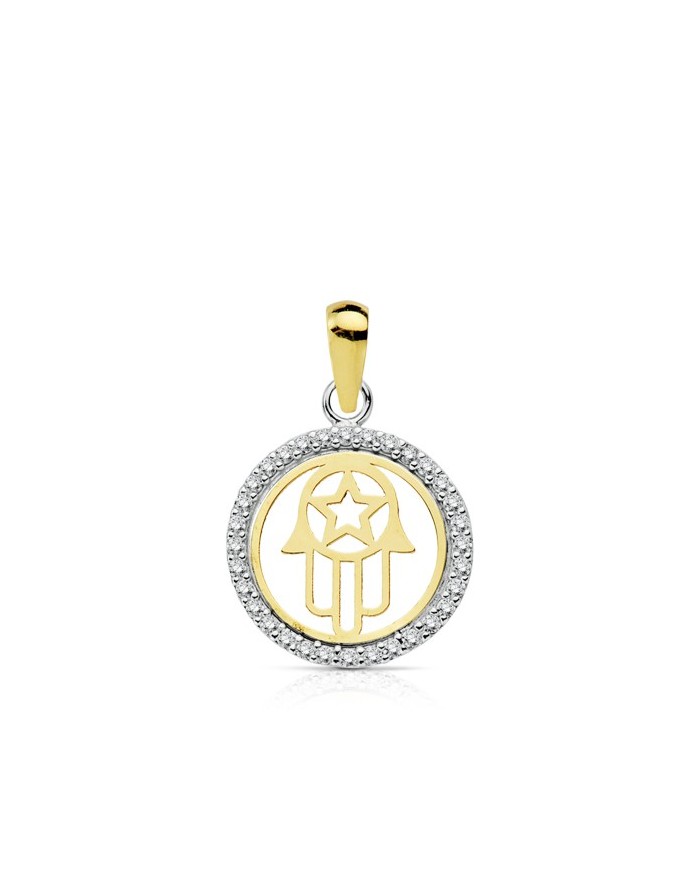 Hand of Fatima Pendant in 18 Kt Yellow and White Gold with zirconia border
