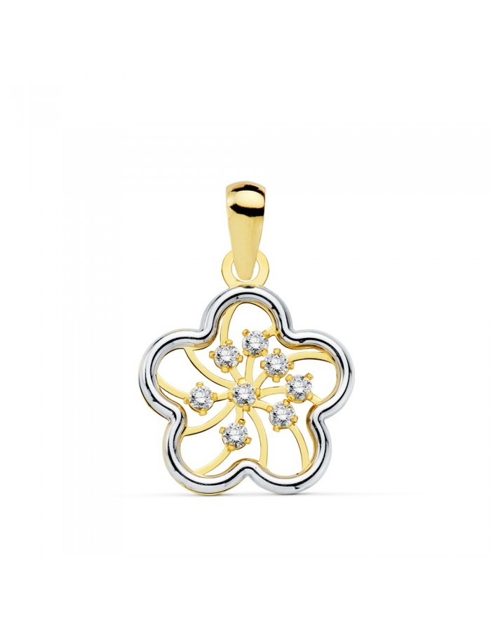 Pendant in 18K yellow gold in the shape of a flower by Joyas Armaan. The stones that adorn it are transparent zircons. It is a pendant specially designed for girls/women.