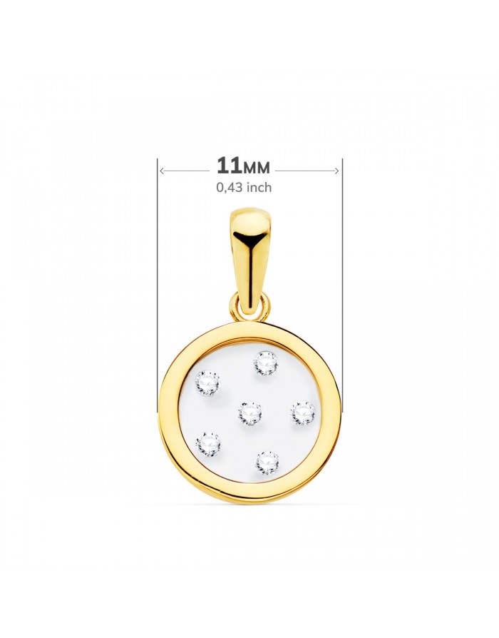 Pendant in 18K Yellow Gold in the shape of round of the brand Joyas Armaan. The stones that adorn it are transparent zircons. It is a pendant specially designed for women.