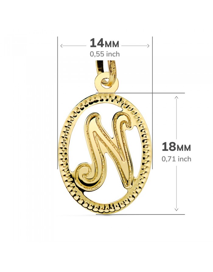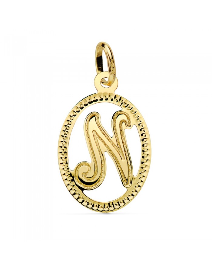 Carved Initial Letter "N" Pendant 18kt Gold