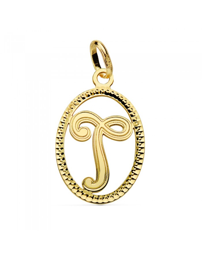Carved Initial "T" Pendant 18kt Gold
