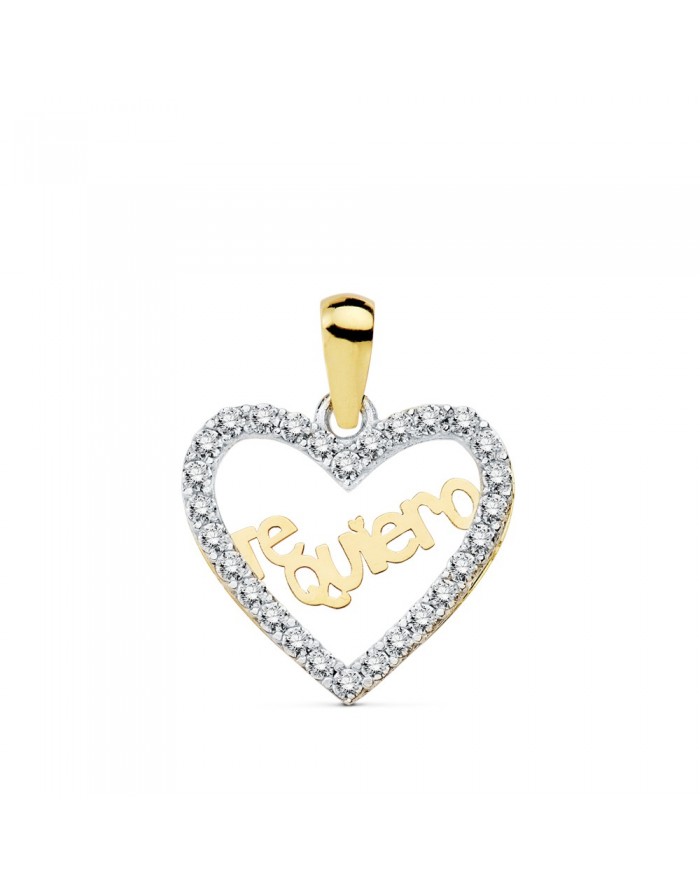 I Love You" Heart Pendant in 18kt Yellow and White Gold with Zirconias