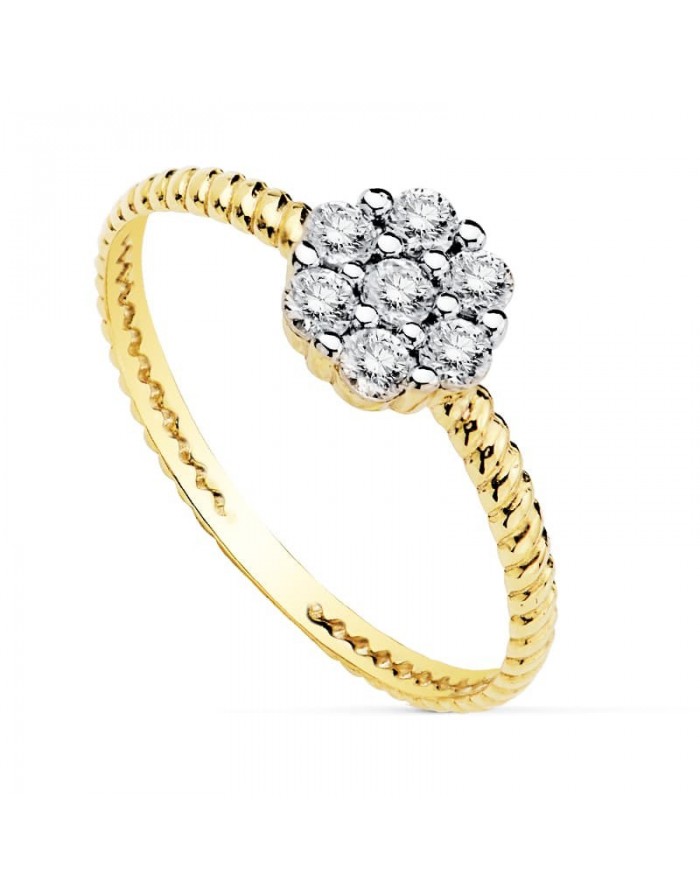 18K SORTIJA BICOLOR CUAJO 6X6 MM CIRCONITAS