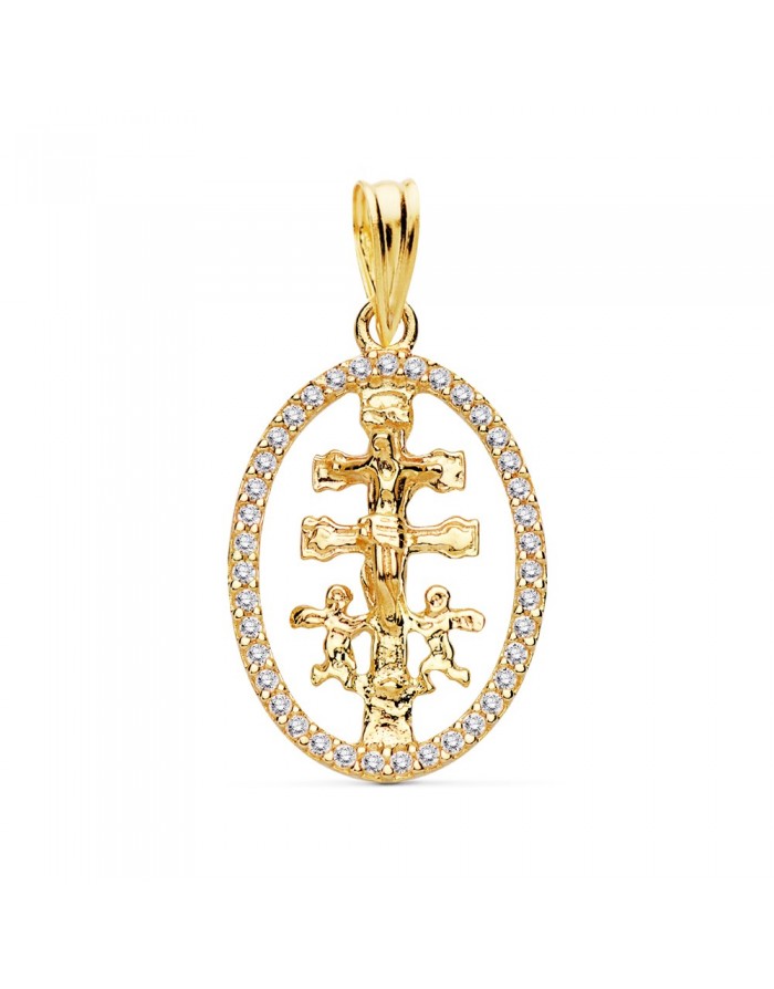 Caravaca Cross Pendant with Zirconia 18Kt Gold -18 x 13mm
