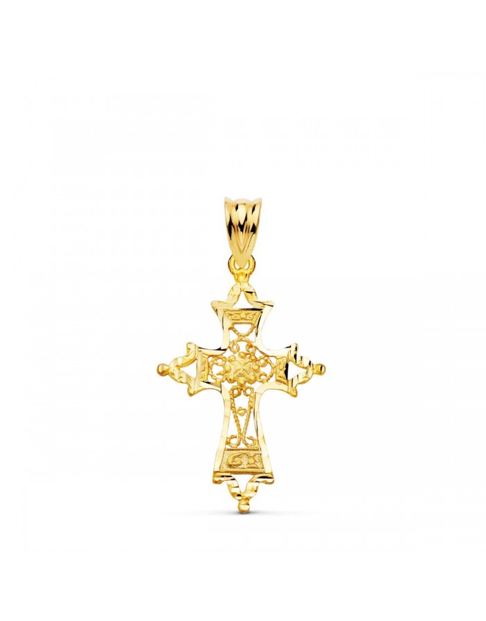 Cross in 18kt Gold Filigree Carved Edges -30 x 20mm