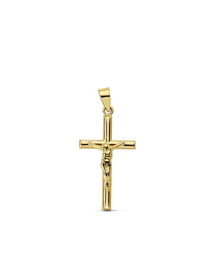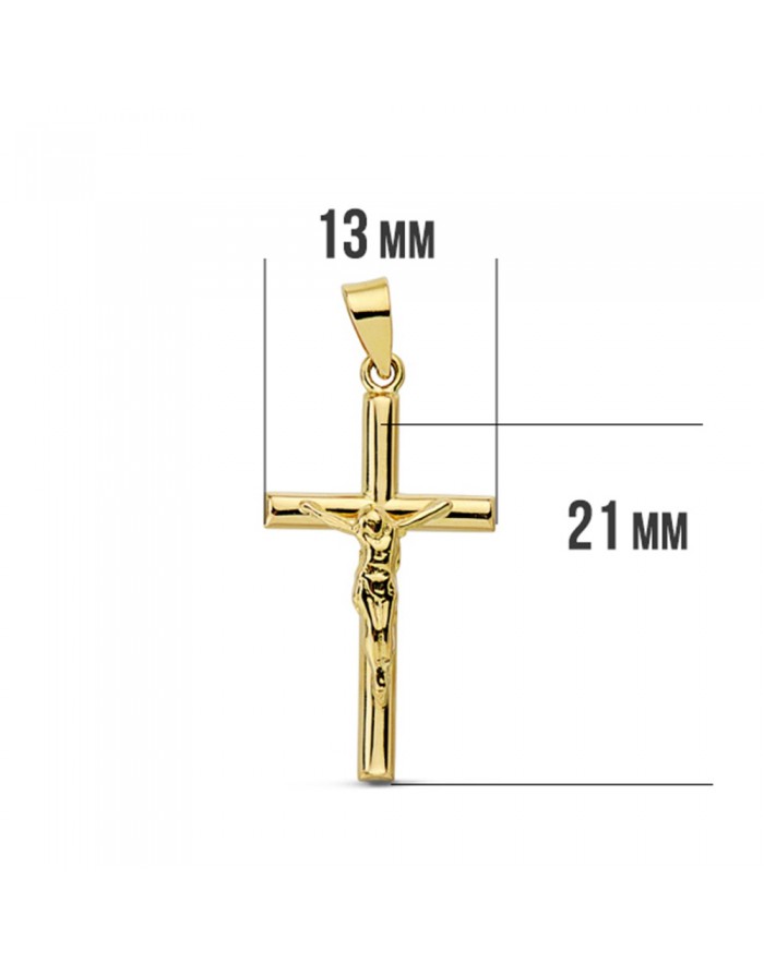 Cross with figure of Christ in 18K Yellow Gold with a Shine finish by Joyas Armaan. This product has dimensions of 21x13mm.