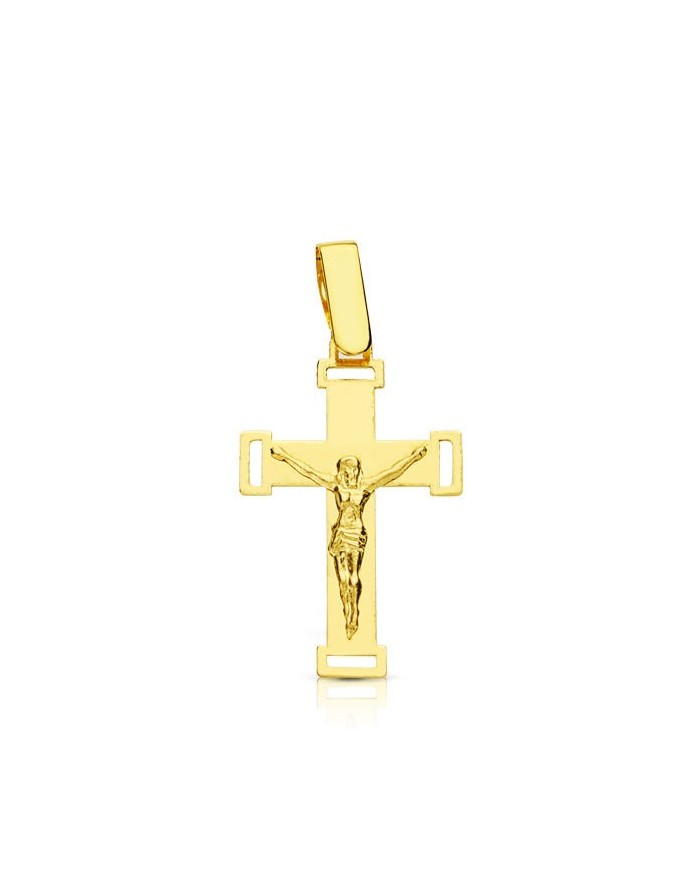 Cross with Christ in 18KT Yellow Gold by Joyas Armaan. This product has dimensions of 22 x 13mm . It is a finely finished piece of jewellery, a flat stick design, with an impeccable polished finish.