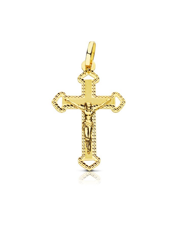Cross with Christ figure in 18K Yellow Gold with a Shine finish by Joyas Armaan. This product has dimensions of 27 x 17mm.