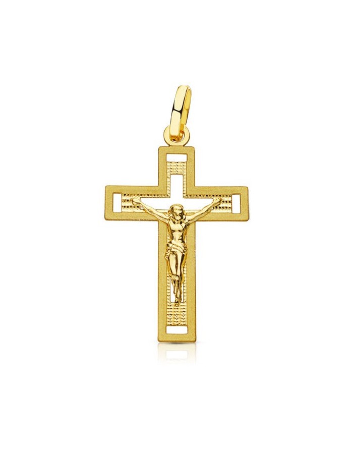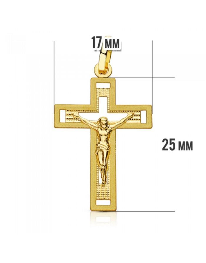 Cross with Christ figure in 18K Yellow Gold with a polished finish from Joyas Armaan. This product has dimensions of 25 x 17mm.