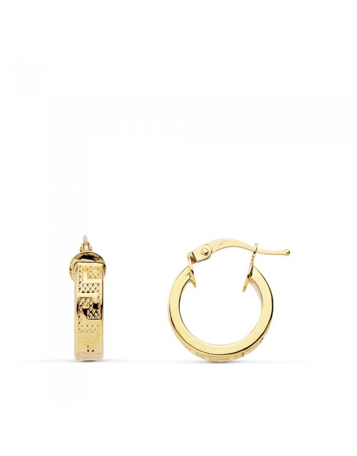 18K AROS ORO AMARILLO GRECA HUECOS 14 MM