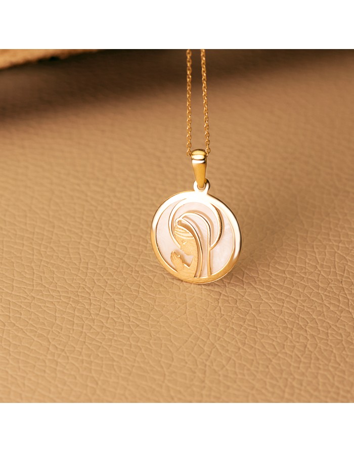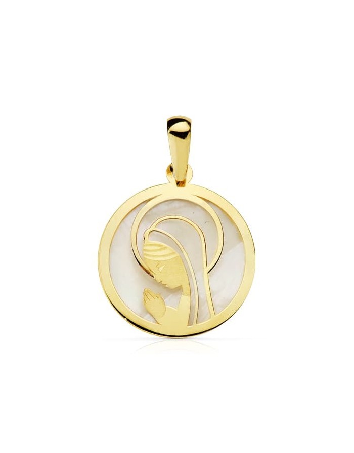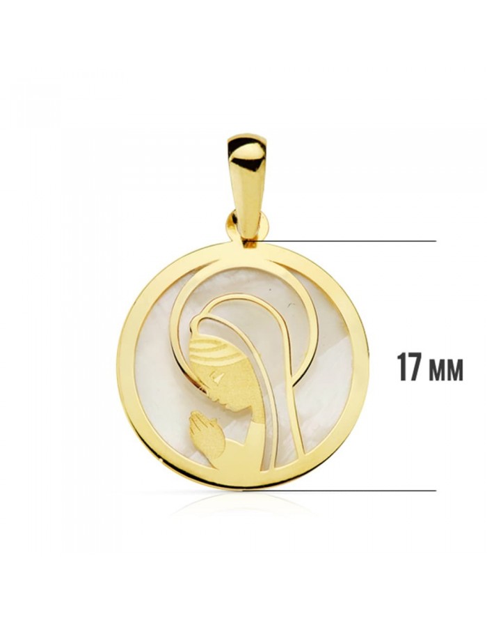 Virgin Girl with Mother of Pearl Relief Communion Medallion in 18kt Gold -17mm