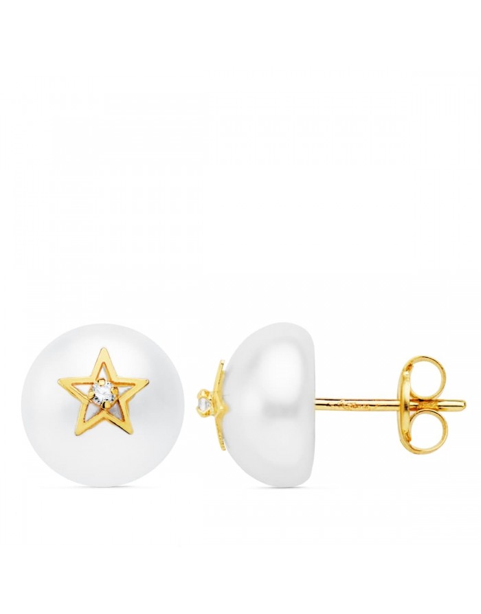 9mm Half Pearl and Star with Zirconia Earrings in 18kt Gold