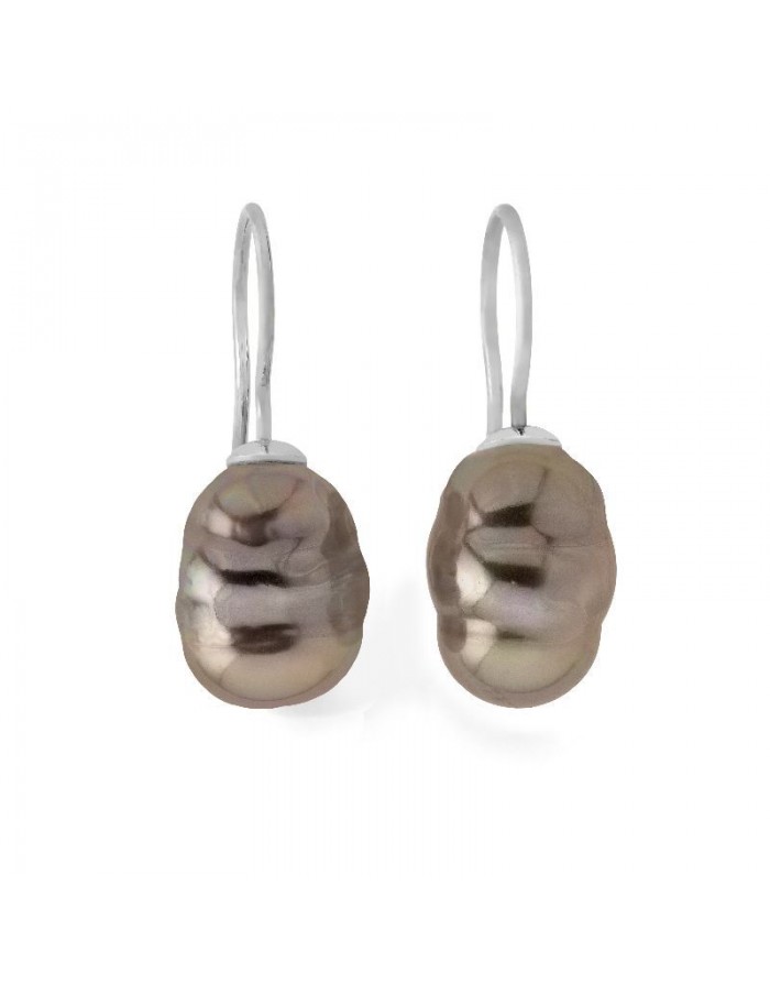 Sterling silver earrings with grey baroque pearl