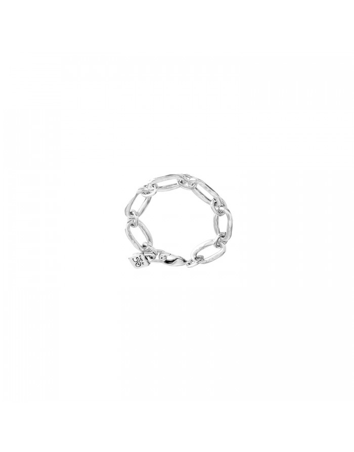 Women's silver plated metal bracelet with silver plated finish from UNOde50 with carabiner clasp. The length of the bracelet is 15 cm.